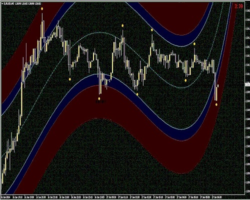 Jika harga tidak berada di zona merah - jangan berdagang! Jangan berdagang juga jika harga berada di zona merah tetapi Anda tidak memiliki titik kuning.