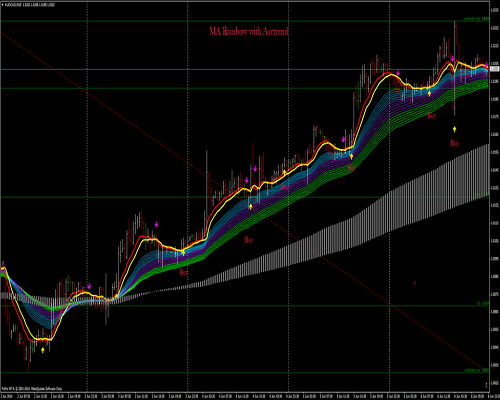 MA Rainbow dengan Asctrend adalah strategi mengikuti tren berdasarkan serangkaian moving average.