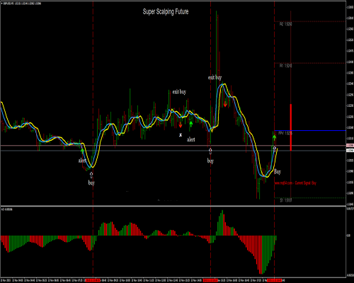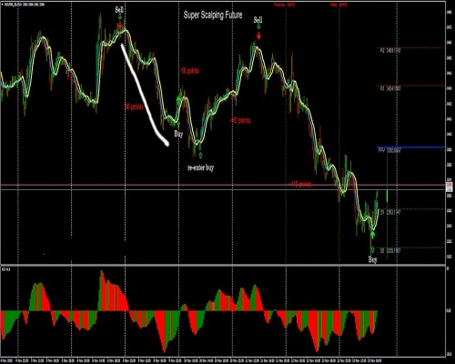 Sistem perdagangan ini didasarkan pada indikator Super Scalping Future dan dua moving average, sangat sederhana.