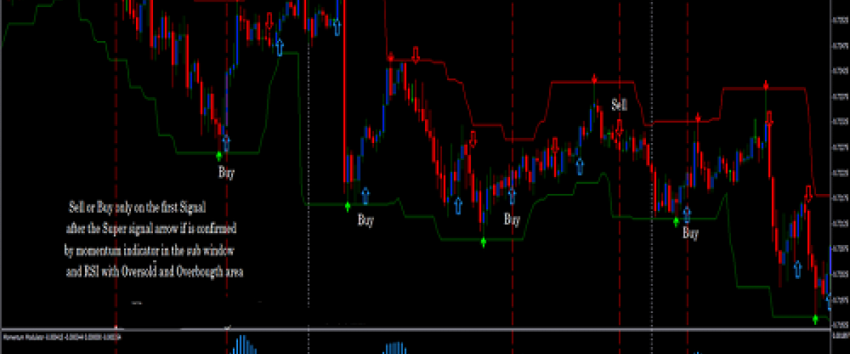Jual atau Beli hanya pada Sinyal pertama setelah panah Super Signal jika dikonfirmasi oleh indikator momentum dan RSI di sub jendela.