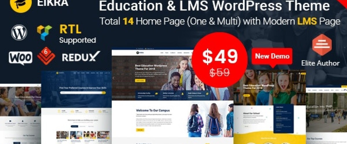 Eikra adalah tema WordPress minimal dan kontemporer yang telah dirancang dengan sempurna untuk semua jenis pusat pendidikan. Dirancang dengan mempertimbangkan Sekolah, Perguruan Tinggi, Universitas atau Pusat Pelatihan, tema WordPress pendidikan akhir ini mencakup semua yang Anda butuhkan untuk pusat pendidikan online lengkap dan LMS. Eikra menggunakan LearnPress, plugin LMS WordPress paling populer, karena dikemas penuh dengan fitur hebat untuk pusat pendidikan Anda, kursus online atau situs web tutorial, tetapi juga super mudah digunakan. Dengan LearnPress LMS, Anda dapat memasukkan kurikulum, kursus, pelajaran, kuis, integrasi pembayaran, dan banyak lagi ...