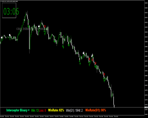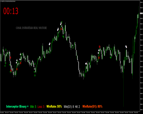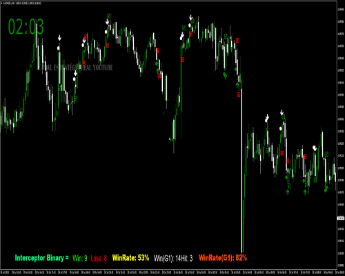 Strategi ini menggunakan indikator Binary Interceptor, sebuah alat visual pada MetaTrader 4 (MT4) yang dirancang untuk menghasilkan sinyal masuk bagi perdagangan opsi biner. Indikator ini dioptimalkan untuk perdagangan jangka pendek dan dapat digunakan pada pasangan mata uang apa pun. Sistem ini mencakup manajemen keuangan dasar melalui Martingale 1 level.