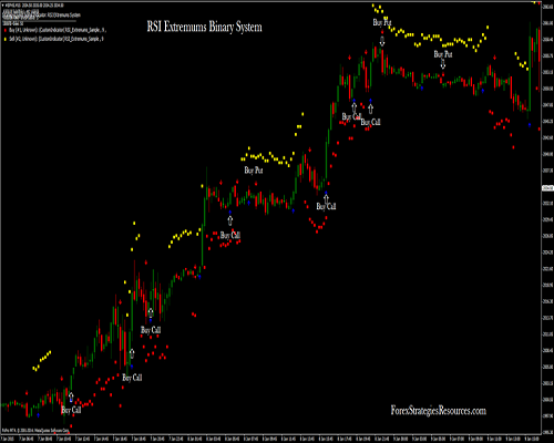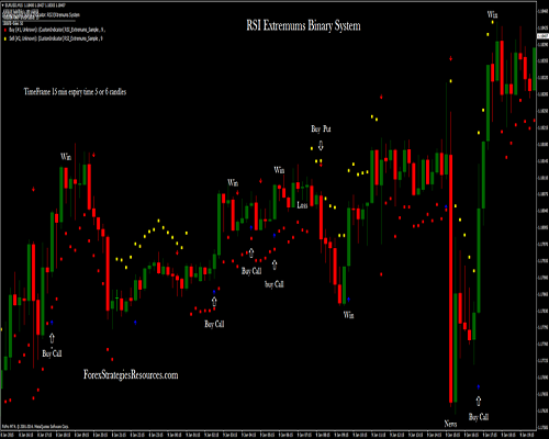 Gambar menunjukkan Sistem Biner RSI Extremums sedang beraksi.