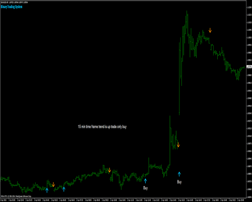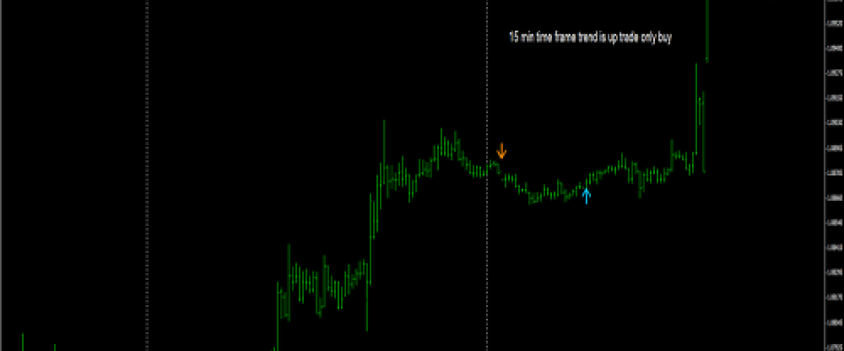 Contoh: Pada kerangka waktu 15 menit, tren naik tetapi Anda mendapatkan sinyal jual pada kerangka waktu 5 menit (abaikan saja) dan tunggu sinyal beli untuk masuk.