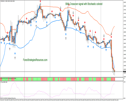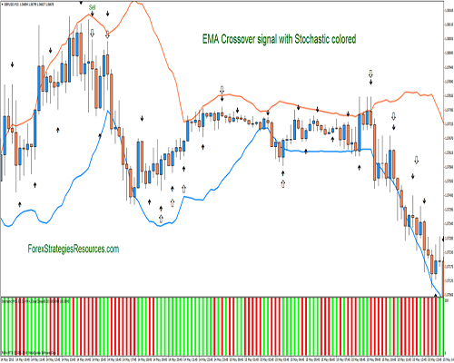 Sinyal Crossover EMA dengan Stochastic berwarna adalah sistem perdagangan yang sangat sederhana.