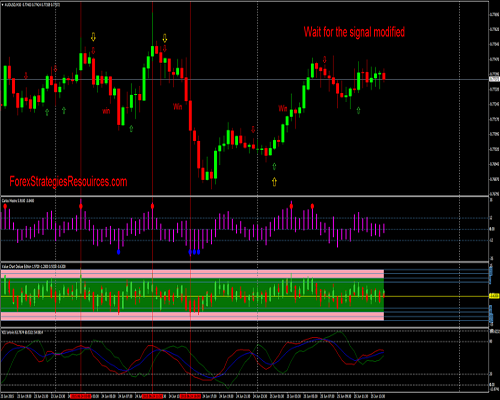 Tunggu sinyal dimodifikasi adalah sistem perdagangan overbought, oversold, berdasarkan level support atau resistance dari indikator grafik nilai. Modifikasi saya adalah menambahkan filter yang mengonfirmasi pembalikan.