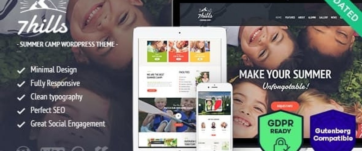 SevenHills is a modern Children Summer Camp WordPress theme with outstanding design. It suits Summer Camp or Outdoors Activities website. Furthermore, the theme includes 2 homepage layouts allowing you to give all the necessary information about your camp services, facilities, activities, events and programs. With SevenHills theme you can create photo & video galleries or schedule & plan events.