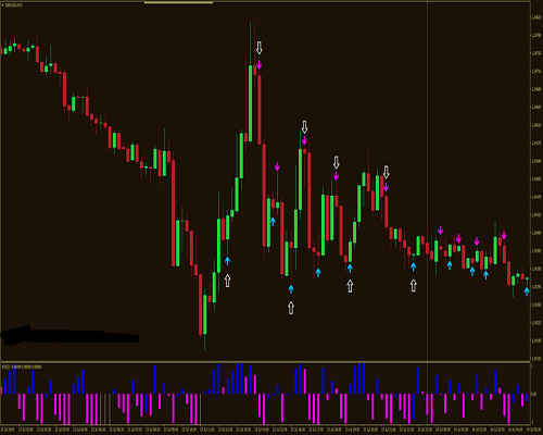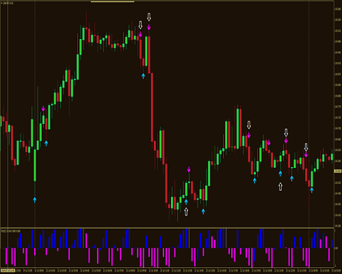 Untuk scalping dengan sistem ini, saya sarankan untuk mendapatkan keuntungan cepat dan tetap menutup posisi ketika panah yang berlawanan muncul. Stop loss awal harus ditempatkan 2-3 pip di bawah atau di atas candle dengan sinyal.
