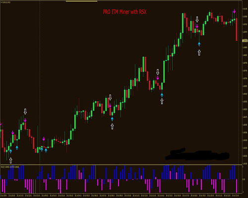 Sebagai filter, saya memilih RSX yang sangat cepat karena sangat responsif dalam mengidentifikasi tren jangka pendek, sehingga cocok untuk memfilter indikator yang tidak sesederhana ITM PRO Miner.