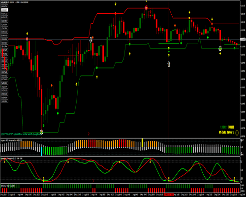 Laguerre Pro dan Korelasi Spearman adalah sistem perdagangan yang berbasis pada indikator momentum Laguerre Pro dan indikator Statistik Korelasi Spearman. Indikator Laguerre PRO mengidentifikasi area jenuh beli (overbought) dengan bar hijau dan jenuh jual (oversold) dengan bar merah di mana kemungkinan terjadi inversi harga singkat. Ketika panah indikator korelasi Spearman muncul di area ini, hal ini mengindikasikan kemungkinan perubahan arah harga. Situasi ini dapat dikonfirmasi oleh indikator support dan resistance serta indikator aksi tren SEF Bull and Bear.