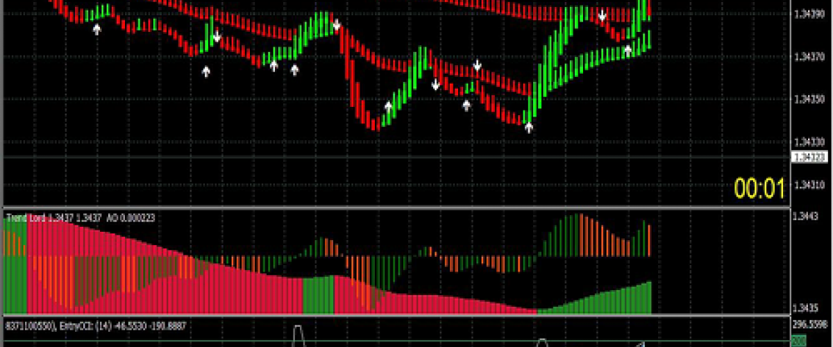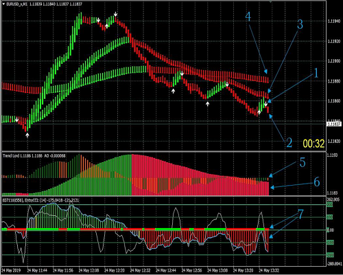 Batang indikator TrendLord berwarna hijau (panah biru 6 menunjuk ke sana).