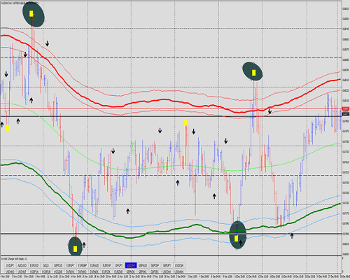 (Saya menggunakan pita TMA untuk menganalisis tren pasar dan untuk menetapkan level stop-loss, serta profit cepat.).