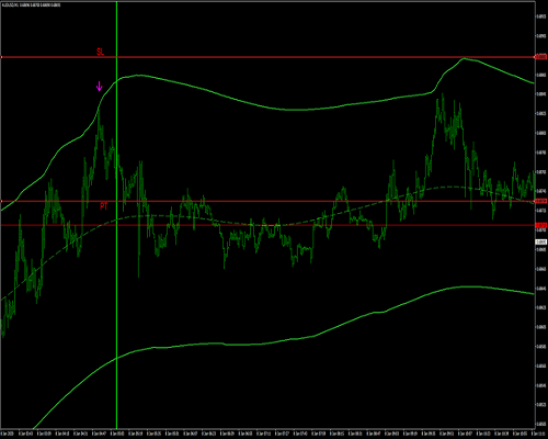 Untuk scalping dan trading harian, profit harus dimasukkan 2-7 pip sebelum band tengah (tergantung pada jangka waktu dan pasangan mata uang) dengan stop loss yang sama dengan target profit.