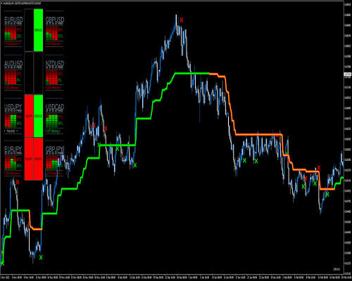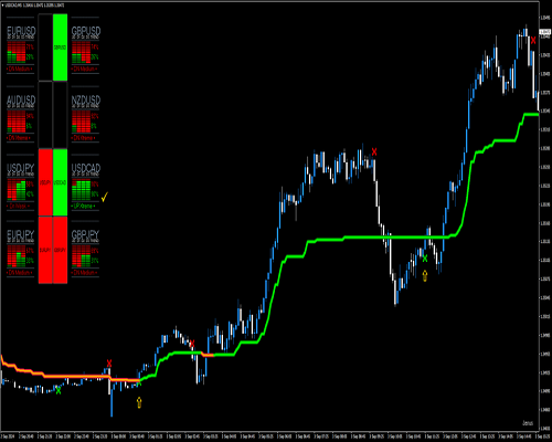 Dasbor, Strategi perdagangan Tradestation Entry dengan Super Trend Averages menggabungkan tiga indikator utama: Dasbor yang menampilkan arah dan kekuatan tren di 8 pasangan mata uang utama, indikator Supertrend untuk mengidentifikasi arah tren dan titik masuk, dan Tradestation Entry (Panah Momentum) yang menampilkan sinyal beli dan jual langsung pada grafik. Dengan menyelaraskan indikator-indikator ini, strategi ini bertujuan untuk menangkap peluang perdagangan berprobabilitas tinggi di pasar Forex.
