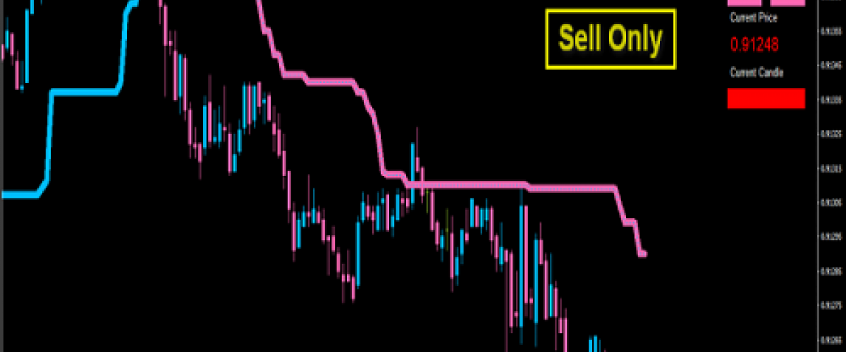 Jendela "Analisis" pada dasbor akan menampilkan "Hanya Jual" dan indikator Fibonacci Algo Scalper akan menggambar panah jual berwarna merah muda pada grafik. Tempatkan stop-loss di atas swing harga terbaru.