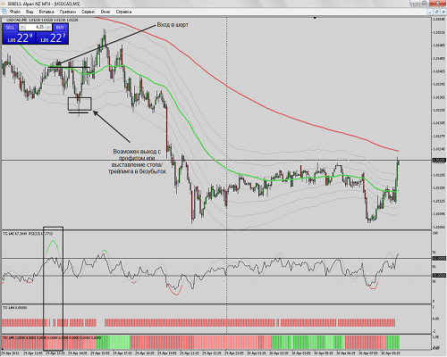 Jika, setelah rata-rata di level ketiga, sebuah candle ditutup di atas level ini, tutup semua order pada level kerugian saat ini.