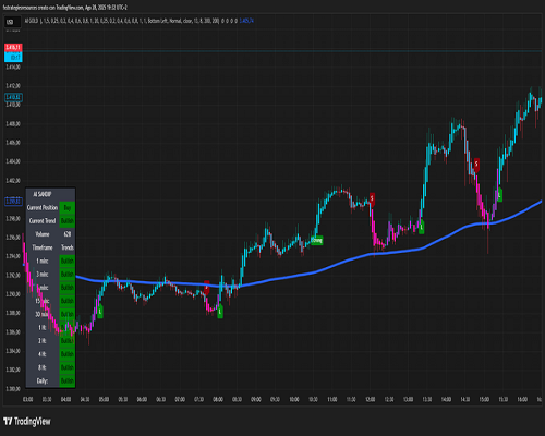 Strategi Scalping AI Gold memberikan sinyal visual yang jelas untuk entri, keluar, dan konfirmasi tren.