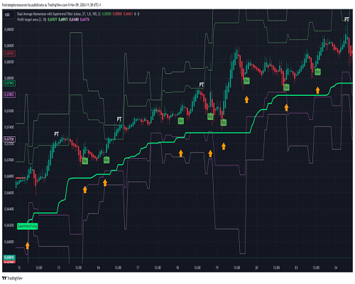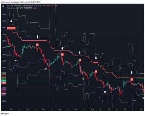 Momentum Rata-Rata Ganda dan Supertrend: Indikator ini menyediakan dua jenis sinyal (pengaturan default):