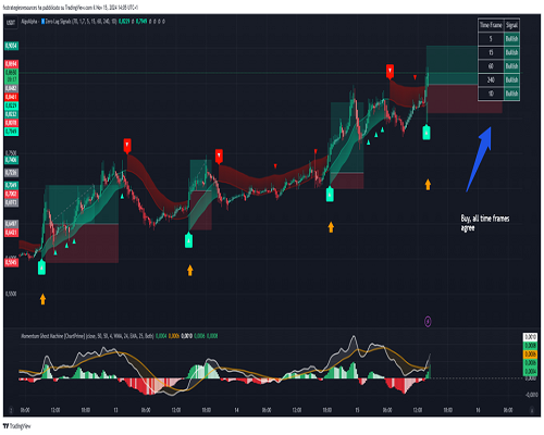 Tren Zero Lag mengonfirmasi tren bullish di semua kerangka waktu.