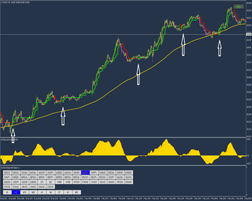 Alpha Trend (2,1): Untuk sinyal tren langsung dan pemicu masuk/keluar visual. (untuk pengaturan 1 Menit, Kerangka Waktu 2, 1,5).