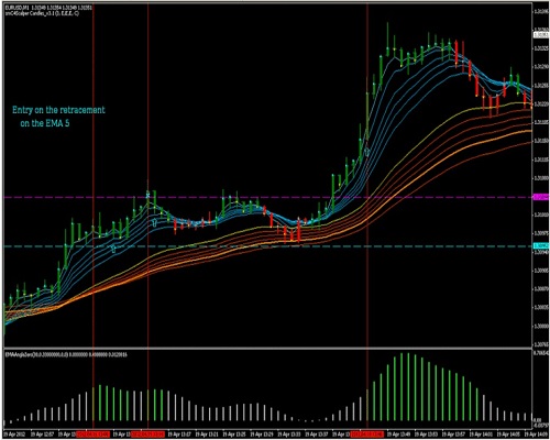 Place an Buy order when the prices retraces on the EMA5.