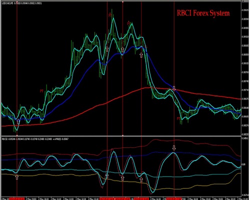 Tunggu RBCI di atas garis biru ketika melintasi garis biru ke bawah, tempatkan jual.