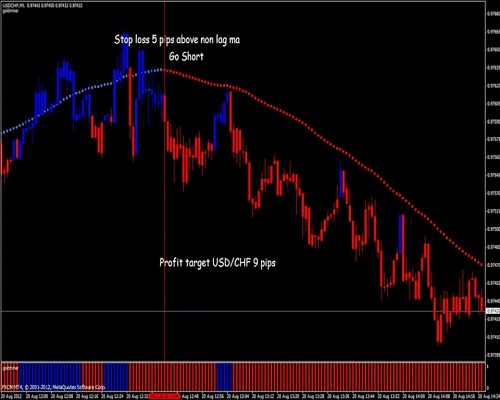 Stop loss 5 pip di atas atau di bawah titik non-lag.