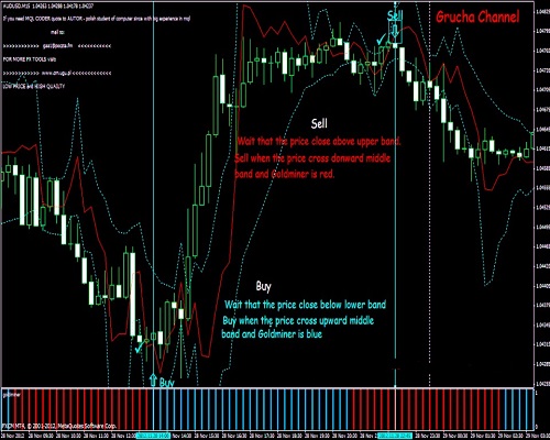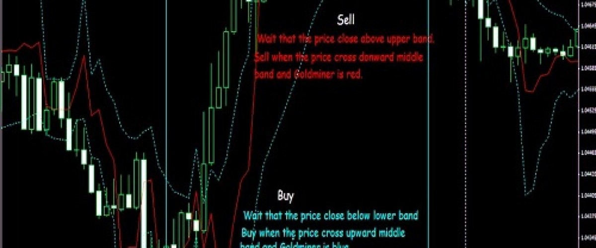 Beli saat harga melewati pita tengah atas dan Goldminer berwarna biru.