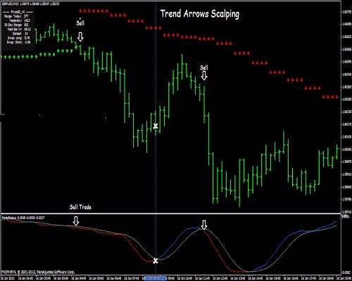 Scalping panah tren didasarkan pada indikator sinyal tren Raptus.