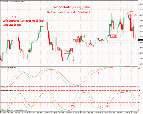 Sistem scalping ini berbasis pada Doda Stochastic tetapi terinspirasi dari sistem scalping Daniel Malaby. Indikator Doda Stochastic adalah indikator Stochastic dengan noise yang lebih rendah. Stochastic Doda merupakan evolusi dari stochastic standar, tetapi perlu dipelajari pengaturannya. Doda Stochastic adalah yang terbaik dari stochastic standar.