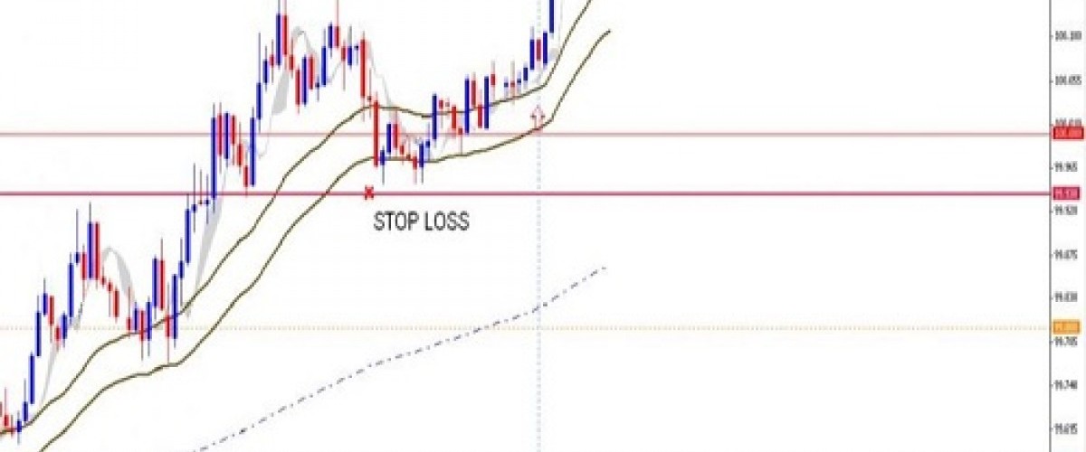 1. Ketika harga berada di atas rata-rata pergerakan eksponensial 200 (garis biru putus-putus EMA);