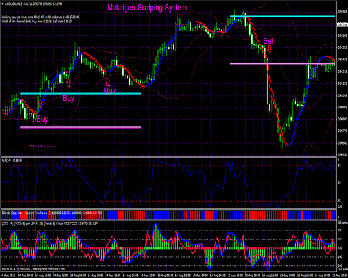 Maksigen Channel (dalam sistem scalping ini, gambar dua garis dari pukul 8:00 hingga 22:00 GMT)