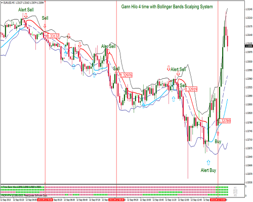 Sistem Scalping ini mengikuti tren dan multi-kerangka waktu. Sistem ini berbasis pada Indikator Gann dan Bollinger Bands.