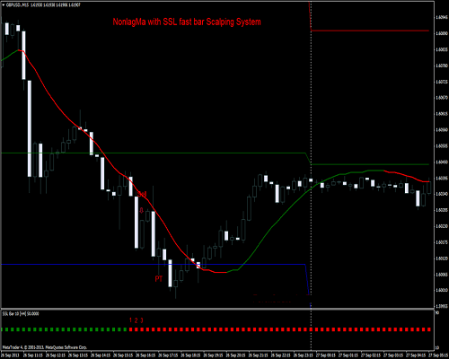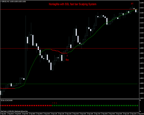 Sistem Scalping ini berbasis multi time frame menggunakan indikator Nonlagma dan SSL fast bar (time frame 240 menit). Hanya melakukan trading antara pukul 06:00 GMT dan 21:00 GMT (Sistem Scalping intraday 15 menit).