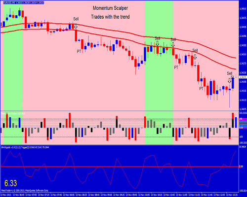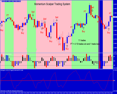 Sistem trading ini adalah strategi forex scalping momentum murni, yang didasarkan pada dua indikator momentum: Momentum Scalper dan indikator Ergodic BH.