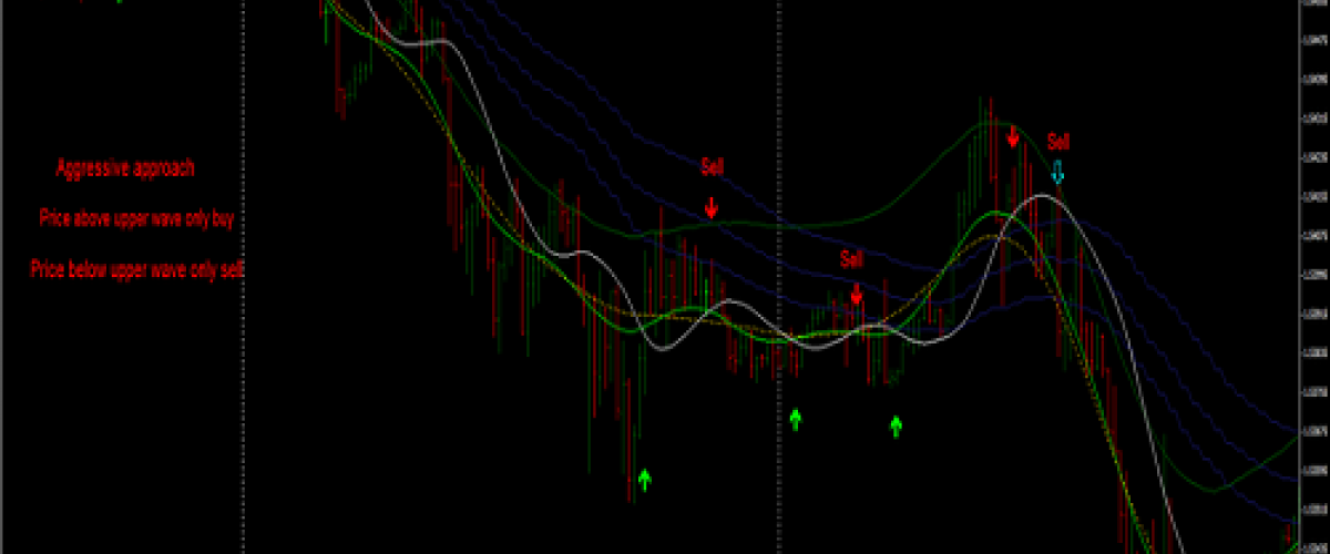 Jika tren sedang menurun dan sinyal beli, saat harga menembus batas bawah gelombang atas, lakukan penjualan.