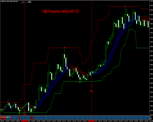 Pada gambar, perdagangan Frekuensi Tinggi dengan CCI.