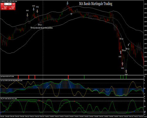 Pada gambar, MA Bands Martingale Trading.
