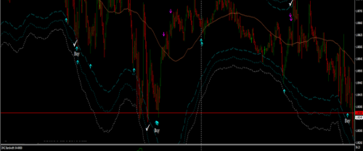Saat harga menyentuh atau menembus band bawah pertama, tunggu panah beli pertama.