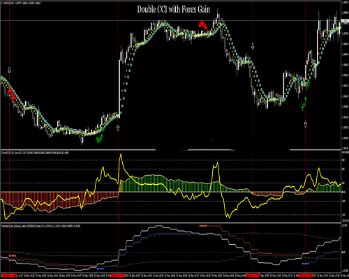 Double CCI dengan Forex Gain adalah sistem scalping multi-time frame berbasis Double CCI yang difilter oleh trailing stop dan kode Forex Gain MTF. Strategi ini mengikuti tren.