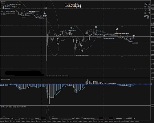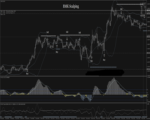 BMK Scalping adalah sistem trading tren-momentum berbasis MACD yang dimodifikasi dan Bollinger Bands, serta arah trading yang juga ditentukan oleh DT Zig Zag Laurer MTF.