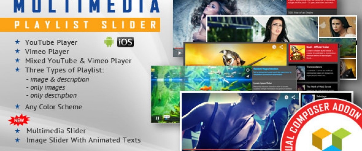 This Visual Composer Add-on can be used as an YouTube & Vimeo video player or as a multimedia slider.