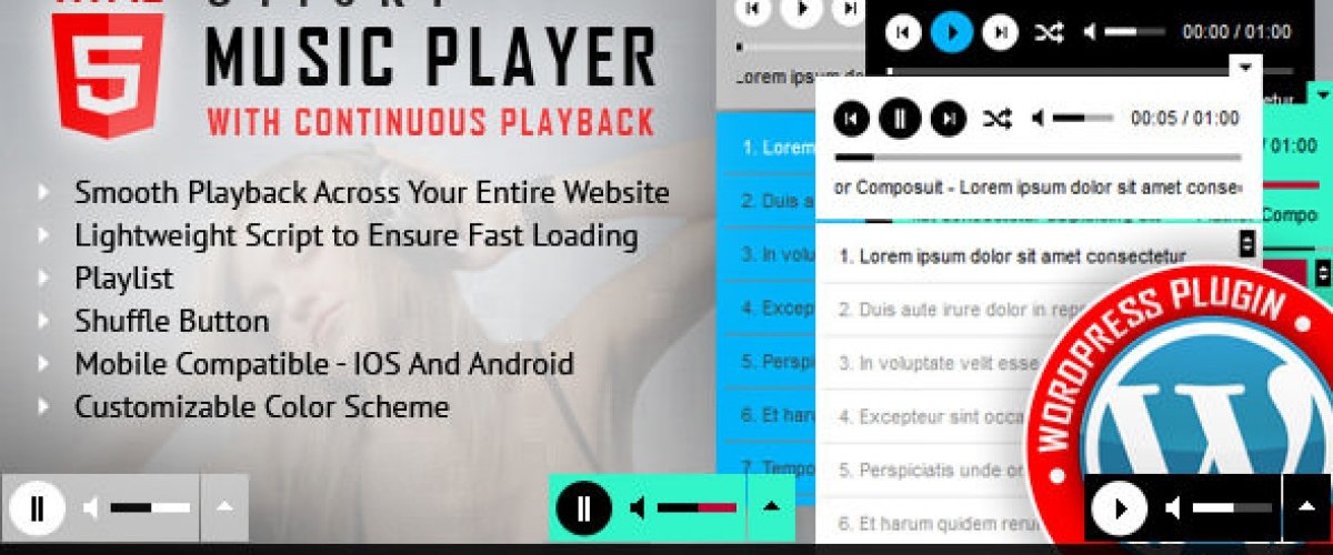 This HTML5 Audio Player is ideal to add background music to your website because it will ensure a continuous and smooth playback across your entire website. You can customize this html5 audio player by changing the color for: player background, volume slider, timer, buffer, seekbar, song title, playlist background, playlist font and playlist item line separator.