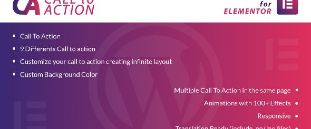 Welcome to Call To Action for Elementor. Add your call to action in just one click. Required Elementor installed if you want use this plugin. Because this is an addon for Elementor