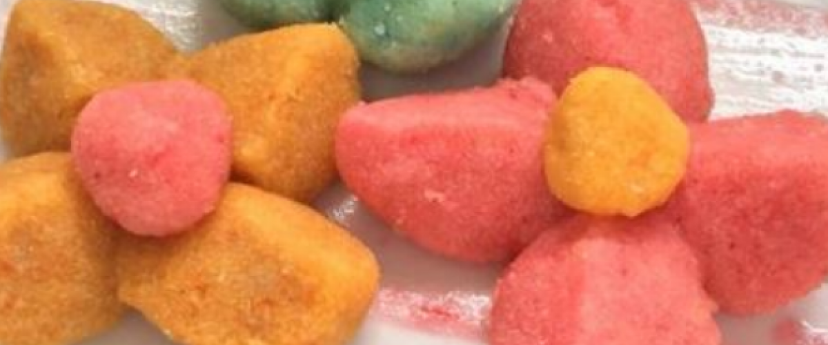 b. Campurkan semua bahan, uleni hingga berbentuk. Bagi 3 adonan sama rata (timbang dulu berat adonan keseluruhan, lalu dibagi 3 beri pewarna sesuai selera.