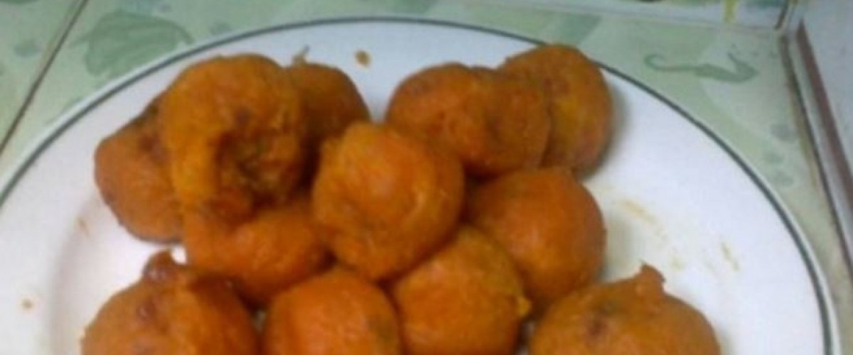 Potong kcil2 gula merah,lalu ambil adonan Ubi bulatkn beri gula di dalam nya lakukn sampai habis lalu goreng.