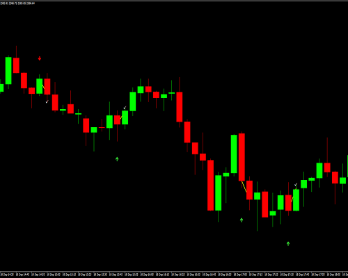 Pasang perdagangan pada pembukaan candle berikutnya setelah panah.