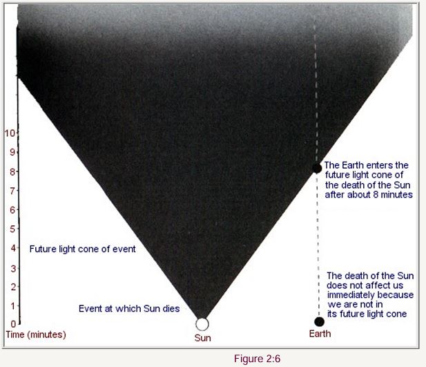 Apa yang terjadi pada peristiwa-peristiwa semacam itu tidak dapat memengaruhi maupun dipengaruhi oleh apa yang terjadi di P. Sebagai contoh, jika matahari berhenti bersinar pada saat ini juga, hal itu tidak akan memengaruhi keadaan di bumi pada saat sekarang, karena bumi akan berada di “tempat lain” dari peristiwa padamnya matahari (Gambar 2:6).