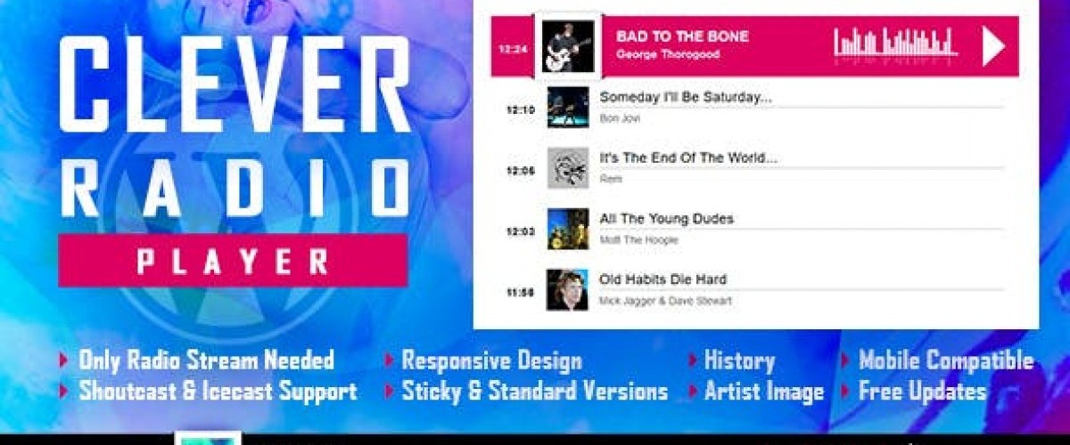 A smooth and efficient radio player with history support which will play ShoutCast and IceCast streams. It can be used as fixed width & centered player, as a full width player or as footer & sticky player.