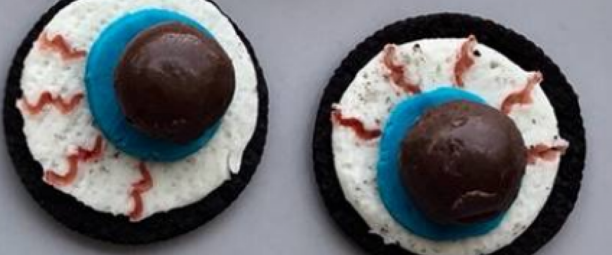 a. Ambil biskuit oreo yang ada krim putihnya. Campur fondant dengan pewarna makanan biru. Rolling dan cetak bulat dengan cookie cutter